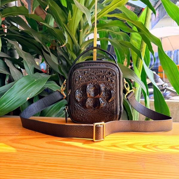 Túi xách đeo chéo nam da cá sấu gù